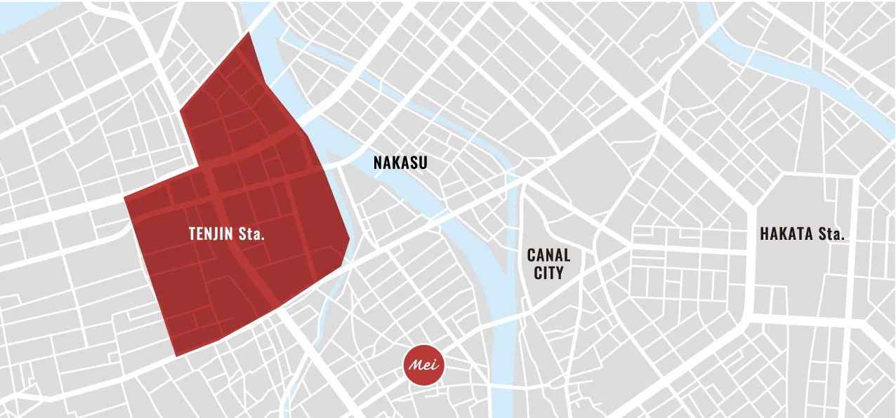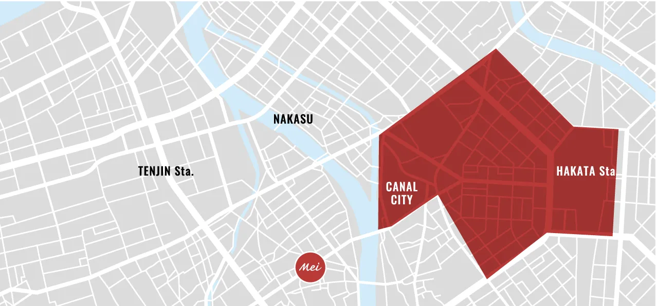 Hotel Meiは博多観光の拠点として、天神エリア、中洲エリア、博多エリア、主要観光エリア全てに徒歩圏内でアクセスできる最高のロケーションです。