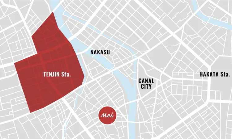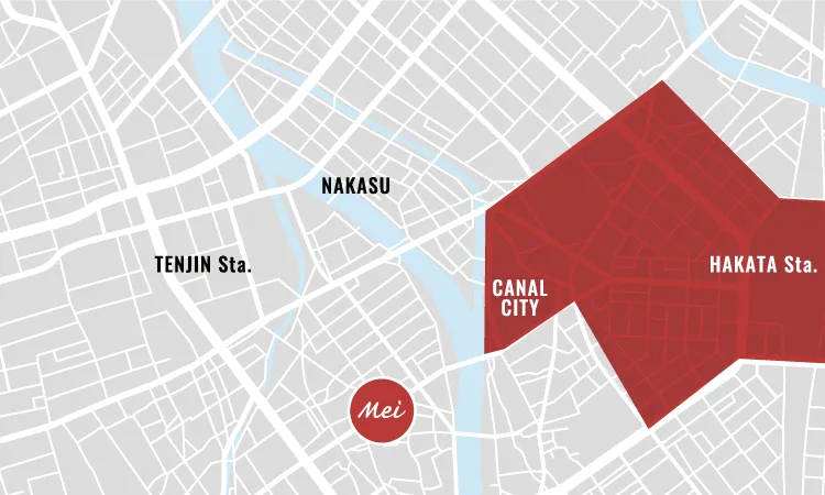 天神、中洲、キャナルシティ、博多の主要観光地からほど近く、街の喧騒から少し離れた落ち着いた雰囲気が漂う場所にHotel Meiはあります。 博多観光の宿泊拠点の機能はもちろん、居心地の良さを追求した客室空間、独自のフードカルチャーが味わえるカフェラウンジ、地域の人たちと共に創り出すローカルコラボレーションなど、このホテルを訪れる人すべてに心地よい体験を提供するライフスタイルホテルです。