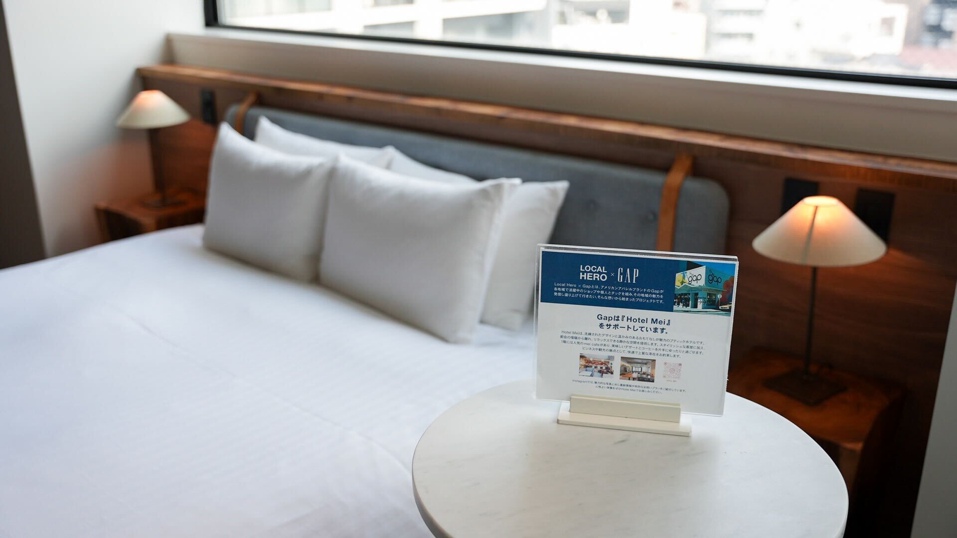 今回も「GAPストア 福岡三越店」より推薦をいただき、店頭にはHotel Meiを紹介するPOPも設置していただいています。